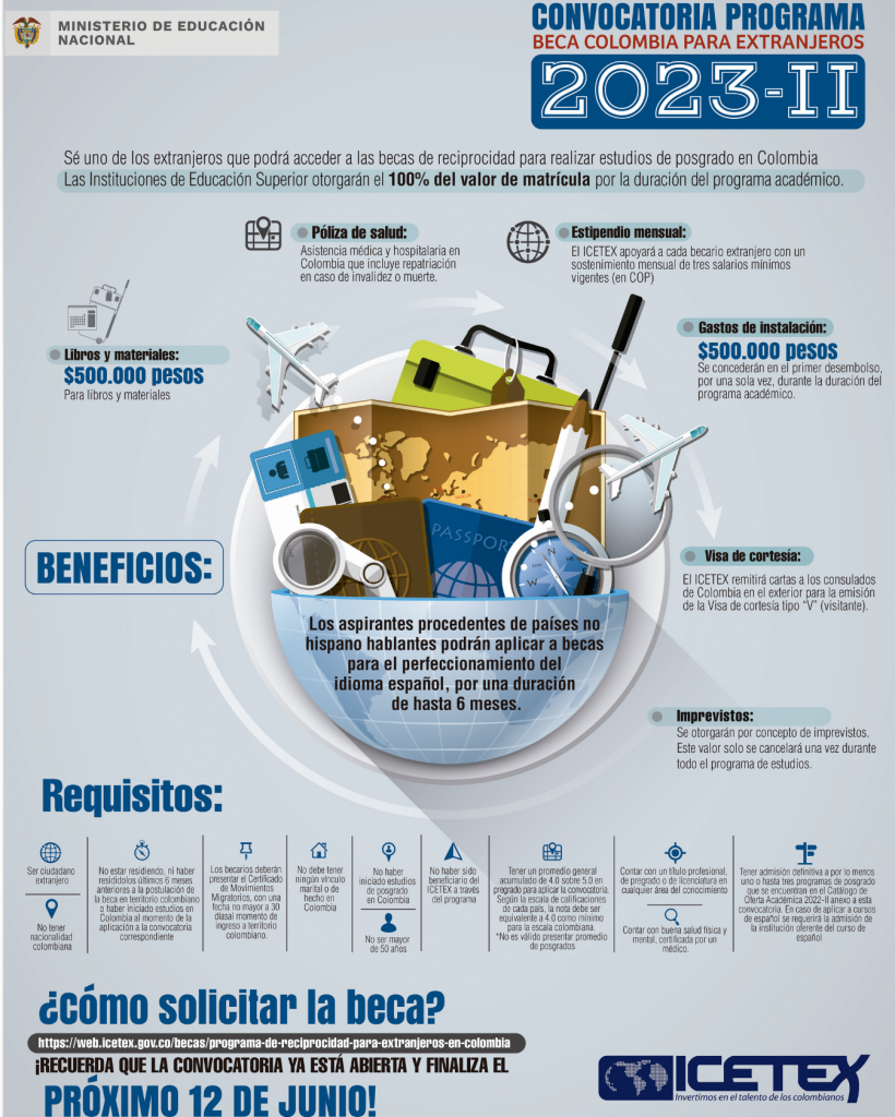 A continuación, puede consultar la convocatoria en su totalidad: Base de postulación programa beca Colombia extranjeros 2023