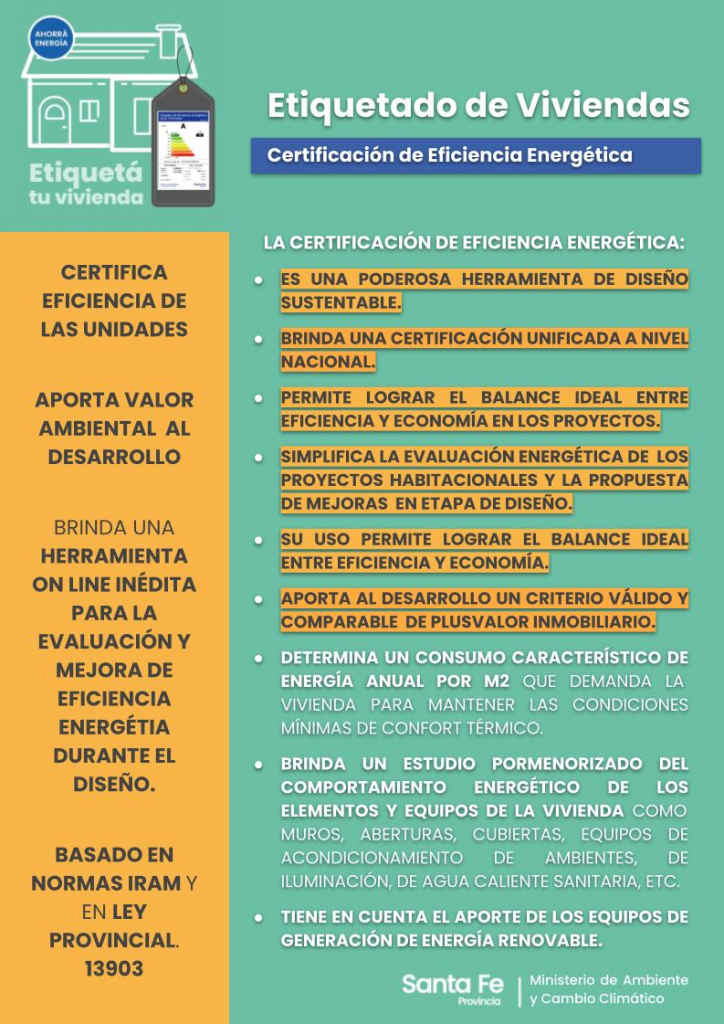 En virtud de encontrarse vigente y reglamentada la Ley Nº 13903, a partir de la cual, se encuentra operativo el Etiquetado de Eficiencia Energética para Inmuebles destinados a Vivienda, la Secretaría de Desarrollo Ecosistémico y Cambio Climático del Ministerio de Ambiente y Cambio Climático de la Provincia de Santa Fe, desea compartir un resumen informativo sobre los aspectos más influyentes dentro del mercado inmobiliario incorporando la perspectiva ambiental como eje.