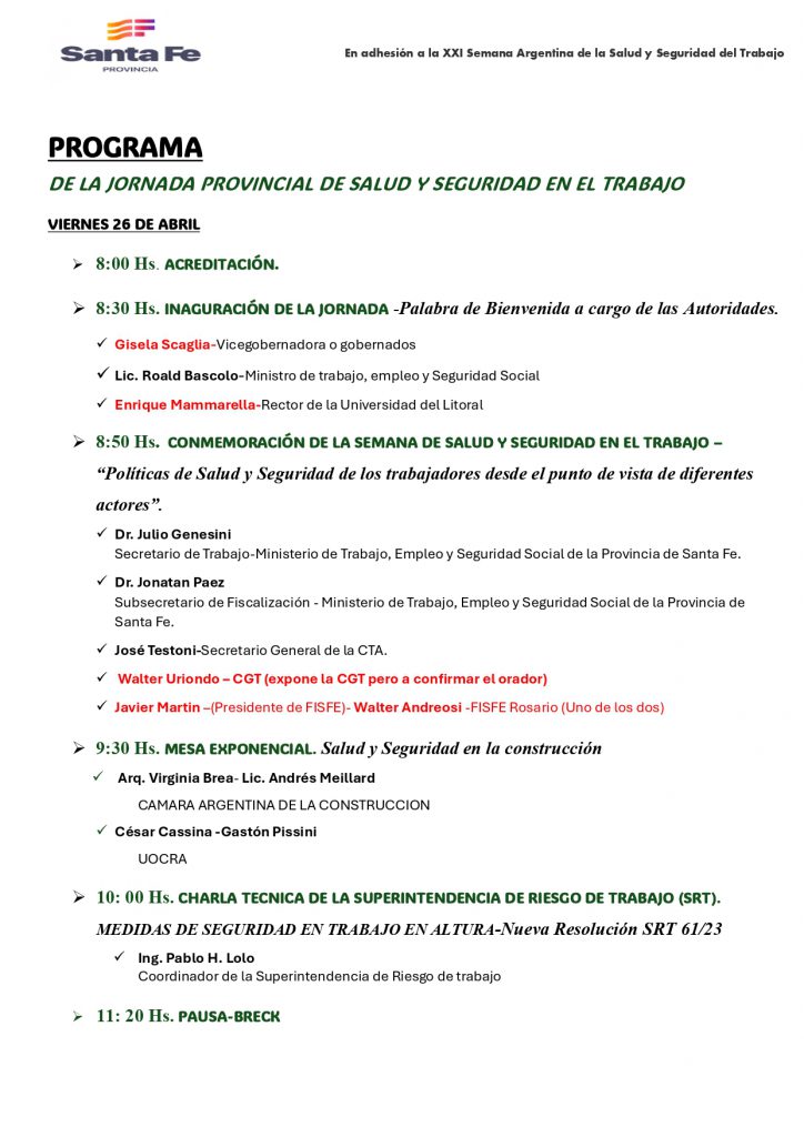 La misma es organizada por el Ministerio de Trabajo, Empleo y Seguridad Social de la provincia de Santa Fe y contará con distintos paneles de diálogo y académicos y profesionales y Comités Mixtos.