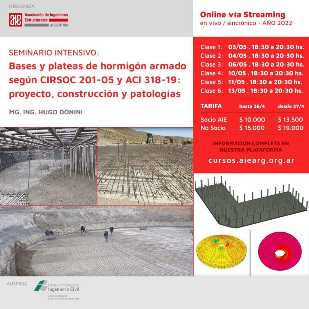 - Clase 5: Consideraciones y recomendaciones constructivas para plateas de hormigón armado. Modificaciones introducidas por el ACI 318-19. Corte en una dirección. Corte en dos direcciones (punzonado). Anclajes. Ejemplos.