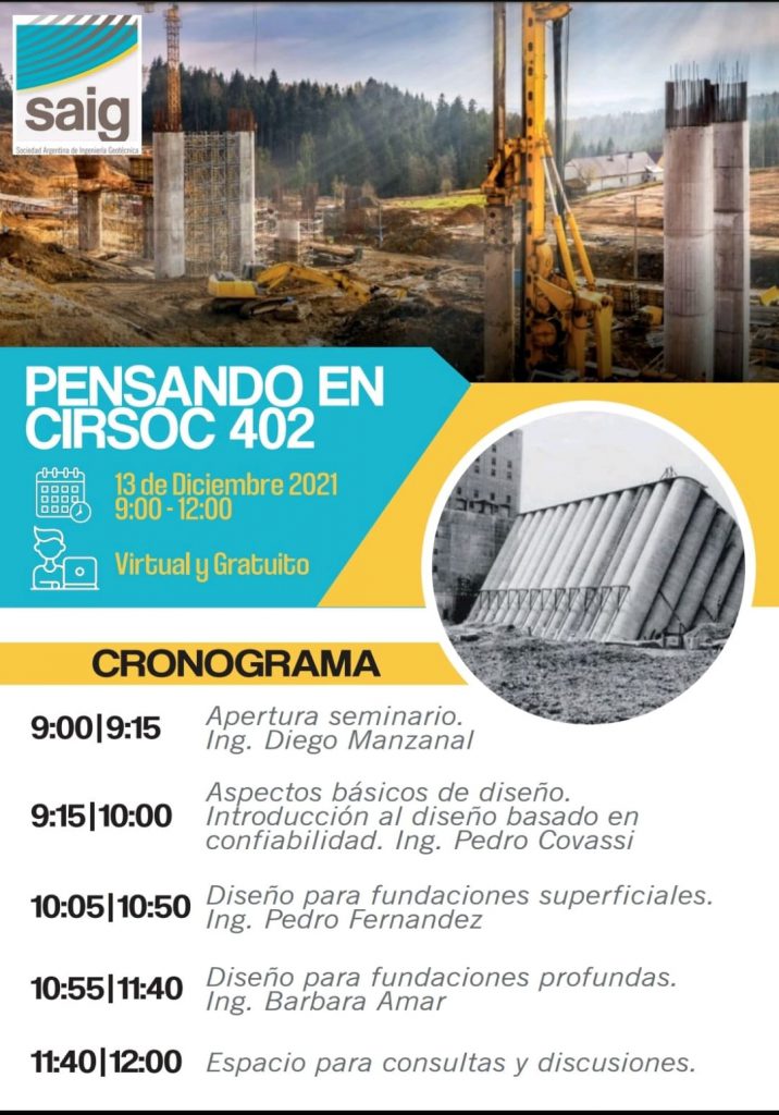 Los representantes de la Sociedad Argentina de Ingeniería Geotécnica (SAIG) están interactuando con el Secretario de Obras Públicas en la elaboración de las normativas del Reglamento CIRSOC en lo referente a los Proyectos: